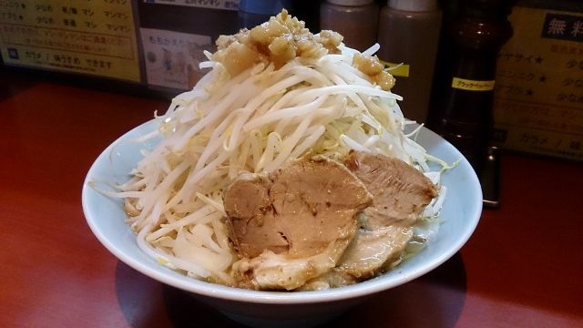 食券を提示して麺に変更希望を伝えると、麺量が300gまでOKなこととニンニクの有無を聞かれたので、300g&ニンニクでお願いしました。